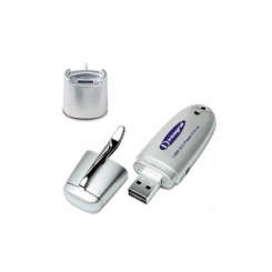 Флешка с специальной базой для облегченного подключения к компьютеру.С помощю колпачка с зацепом флешку можно носить на какрмане рубашки как авторучку.В приятном серебристом корпусе скрывается большая память от 32 до 64 гб.